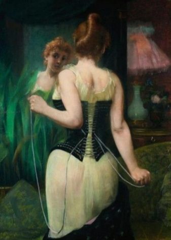 European women began to use corsets in their images only at the end of the XIII century. Their corsets were in the form of a wide belt that tightened the waist and supported the chest. With the onset of the 15th century, the wasp waist, over which the chest protruded, came into fashion.Women had to tighten their waist so much that blood circulation was disturbed, oxygen levels in the body decreased, and fainting became a frequent occurrence.