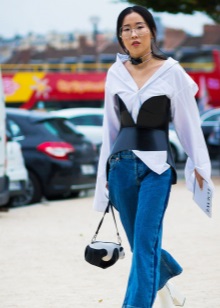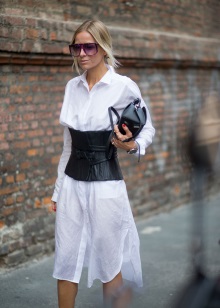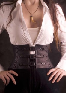 It will go well with blouses or dresses made of light fabric or with straight women's trousers in light colors. A leather corset belt will be perfect with a snow-white shirt or turtleneck in the color of a corset. A corset in the form of a top will look harmoniously combined with a full skirt.