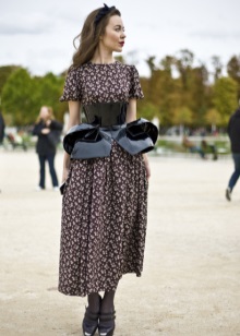 - In the evening looks. A corset of any style and texture is ideally combined with clothes in an evening style. In the collections of many famous designers you can often find evening dresses with corsets. A magnificent skirt looks especially impressive, it is able to enhance the effect of a thin waist from a corset and make any woman a real queen of the Middle Ages.