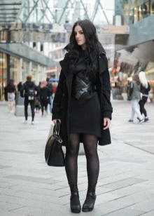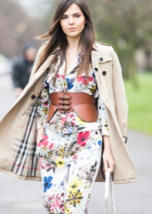 - With a dress. Such a combination will emphasize the waist and visually make the silhouette slimmer.