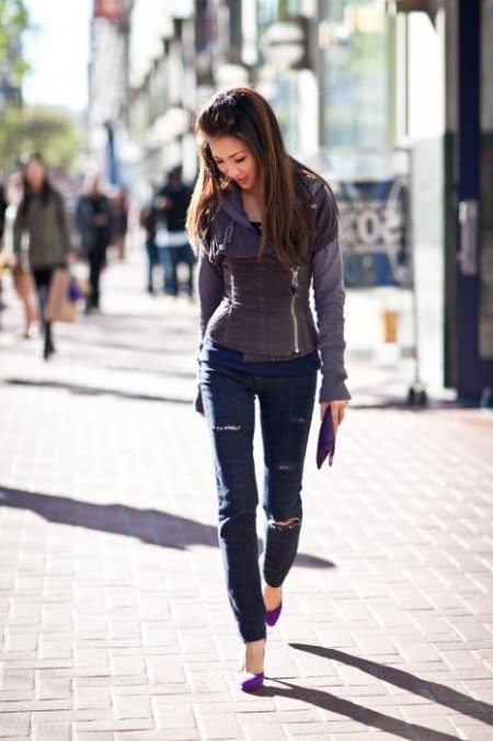 - Combined with leather leggings or skinny pants. A very bold image that borders on a treacherous seductress and a striptease costume.