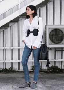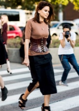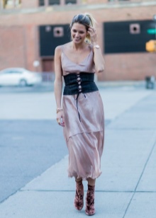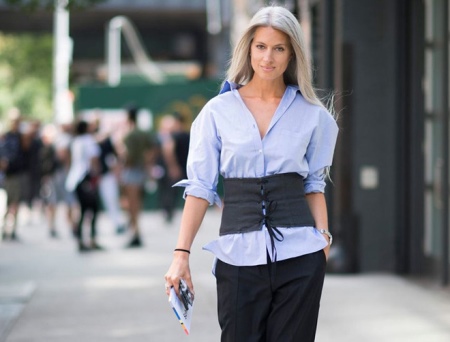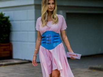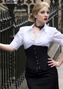The corset will be a great addition for the owner of high growth. The most successful combination is rightfully recognized as a belt model with loose and voluminous clothing. It is worth remembering that such an accessory will be absolutely useless if it is combined with tight-fitting or straight outfits.