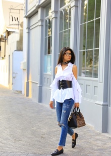 The most popular are traditional models with small modifications. Such an accessory will be a great choice for a practical fashionista. As a rule, such products are made of genuine leather or leatherette. They are decorated using classic lacing, which also carries a functional load. It helps to fix the product more securely on the figure.
