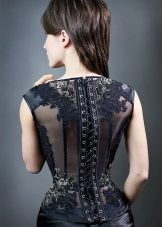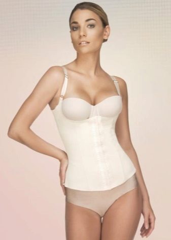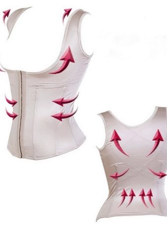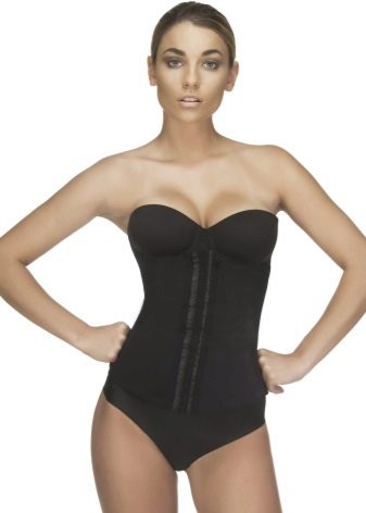 The tightening corset performs the function of corrective underwear. It is built so that the bottom layer consists of plates of hard plastic, and the top is most often a belt of elastic material that is fastened with Velcro or hooks.