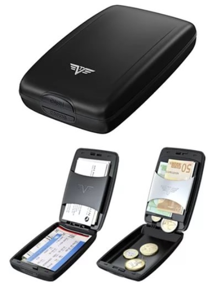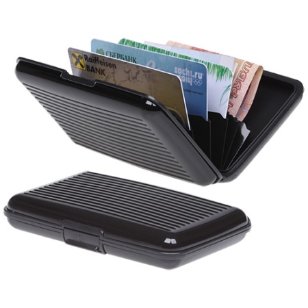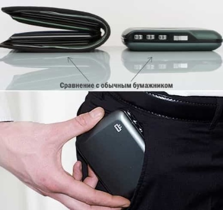 Such an original mini-safe is able to accommodate up to 15 cards and up to 55 business cards. Of course, there is still a lot of room for money.