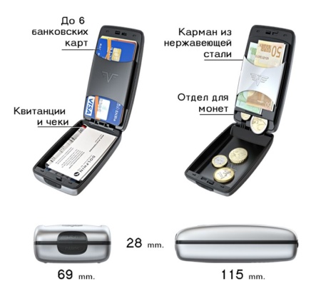 A metal product is a great alternative to wallets and purses made of leather, leatherette, textile or suede. It is multifunctional and combines a sufficient number of indispensable qualities.