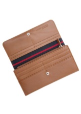 The brand that conquered America, and then the whole world, Tommy Hilfiger today pleases buyers with leather accessories in pastel colors, complemented by a company logo. Wallets for women are presented not only in a monophonic design, but also with embossed ornaments, contrasting stripes of delicate colors and unusual prints.