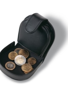 An interesting organizer for metallic money is a coin box, a special box with holders-cells for coins of different diameters. A female coin box in appearance can resemble a powder box, and is even equipped with a mirror on the inside of the lid.
