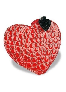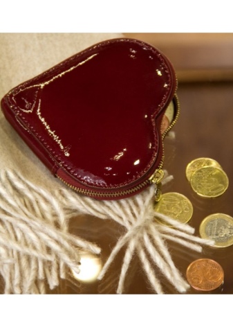 A heart-shaped wallet is considered a good memorable gift for a woman. This is a very common model that can be found in many manufacturers. Such "hearts" can be made of a variety of materials: calf leather, artificial leather, suede, silicone, etc. The color most often is chosen red or black, but other options are also possible: purple, green, blue, etc. The front side of the product may be decorated with a pattern.