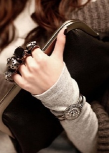 Especially for courageous and creative girls, original models are produced in the form of animals or geometric details. The non-standard form of the accessory will surely attract the attention of others. Such items may not be suitable for everyday wardrobe. They should be taken with you to funny parties or meetings with friends.