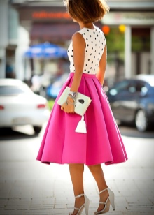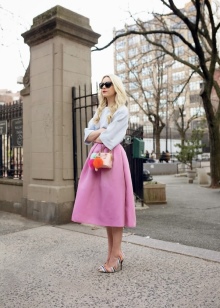A bag of bright and saturated colors will harmoniously look with outfits in neutral and calm shades. The image will be more complete if you add a bright neckerchief, headpiece or belt to it.