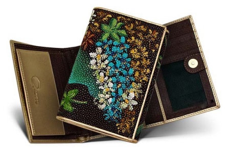 For lovers of more sophisticated models, designers offer wallets decorated with crystals, beads, stones, gold and silver thread and other jewelry. As ornaments for such models, traditionally used are floral themes, butterflies, hearts, Japanese characters, marine animals, oriental ornaments, birds.