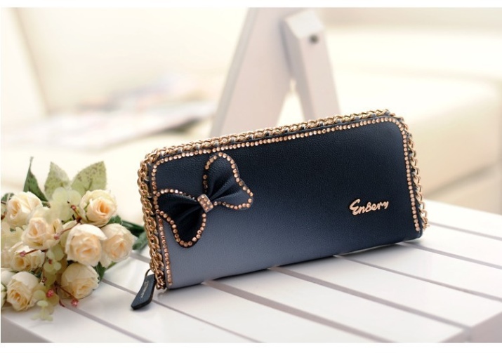 Beautiful wallets vary in size and shape. They are everyday or smart. For every day, a concise leather wallet of neutral colors is quite suitable. As an addition to an evening outfit and an elegant handbag, wallets with rhinestones, embroidery, lace or satin trim are most often used.