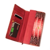 Women's wallets differ from most men's wallets in a bolder design, which is expressed in cut, color schemes and jewelry used. In addition to rivets, zippers, buttons and straps, which are an integral part of fasteners, there are often applications, embroideries, brand emblems, bows, lacing, stones, rhinestones on wallets. A wide variety of model range is achieved not only by decor, but even by the material itself, among which there is leather of a lamb, calf, crocodile, snake, shark and even sea stingray.