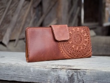 Ethno style is also used in handmade products, if the master gives the wallet the effect of "antiquity", you can get a unique thing - exquisite and stylish. But you will need to wear it with a certain style of clothing - long skirts, woven shoes, tops or shirts under the "peasant" look.