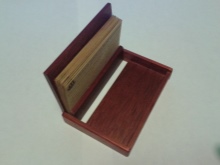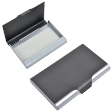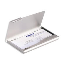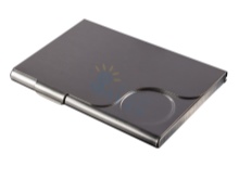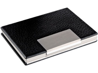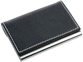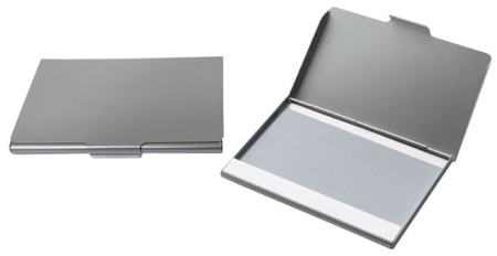 - A business card holder in the form of a rectangular metal or plastic box for storing your own business cards.