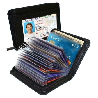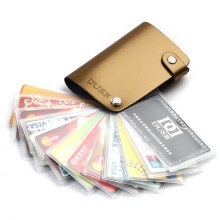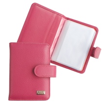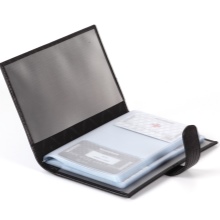 A credit card holder is a purse for storing exclusively credit cards. Often they are very similar to business cards, differing only in large size (since credit cards are thicker than standard business cards), and holders are made of more durable plastic. A purse with several pockets on each page is one of the most popular types of credit card.