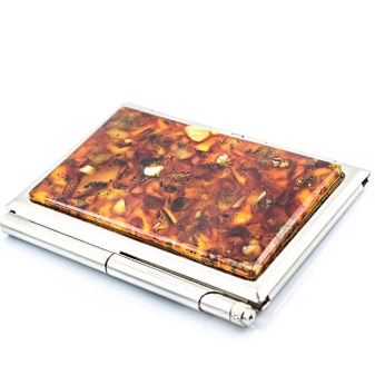 A personal business card holder with a stone is ideal as a gift for a lady (amber is especially popular in this regard).