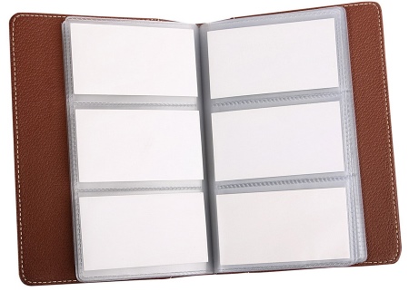For example, now you can often find original, cool models, such as fan business card holders, the pages of which are fastened with a button, with removable files or artificially aged. The choice is great: in the haberdashery market you can find a business card wallet, and a three-row desktop model - in a word, any thing to your taste.