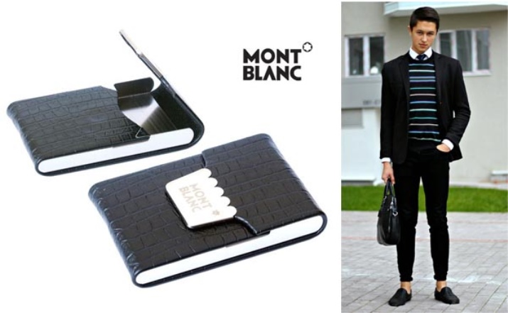 Montblanc has been associated for over a century with the manufacture of luxury writing instruments: fountain and ballpoint pens, and markers. To date, the range of the company has expanded significantly. Now the brand also produces leather products (bags, wallets, wallets, briefcases and much more). Mont Blanc business card holders are made of genuine leather, some are additionally decorated with silk.