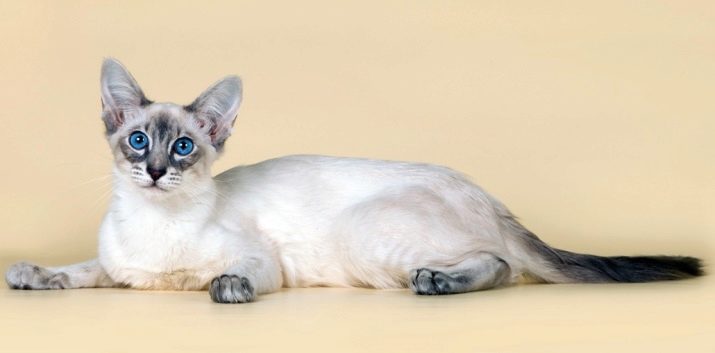 This breed of cats was born as a result of crossing Siamese cats, the hair of which is slightly longer than usual. The result is a cat breed with a fringe on the tail. In addition, these cats are very graceful. They have a wedge-shaped head with a narrow muzzle and a long nose. Their ears are in the shape of a triangle, their eyes are a little slanting and almond-shaped.