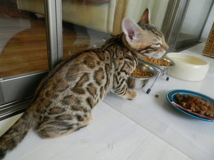 The Bengal cat is half predator, therefore meat must be included in her diet. Her stomach has a shortened shape, which indicates the inability to eat only plant foods. The feed should be presented in large pieces, because this size allows the prevention of various dental diseases.