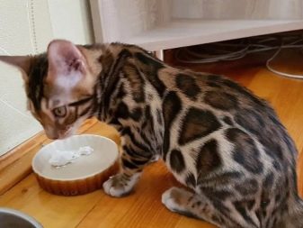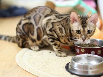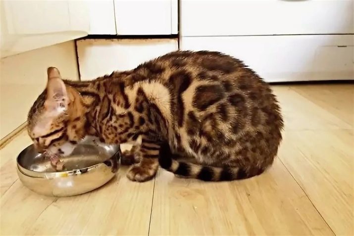 Bengalis are fed 3-4 times a day, dosed. It is important not to overfeed the animal, as the life expectancy of cats with obesity, unfortunately, is small.