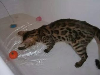 Genetically, these cats have a passion for water, so do not resist if the animal wants to take a bath with the owner. In this case, the kittens will try to throw all the toys, tubes with shampoo, jars of creams and all other objects that will only be in the access zone into the bathroom.