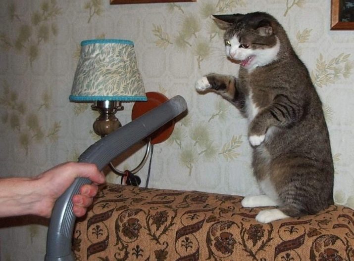- Some cats see a rival in the vacuum cleaner rather than a life-threatening machine. You may also have noticed such animals that remain in the room with the car, stand on their hind legs, put their tail in a pipe and even try to attack the source of unrest, despite the fact that the cat is very scared. Pets perceive the movement of the machine as an encroachment on their territory and are ready to defend their rights to land.