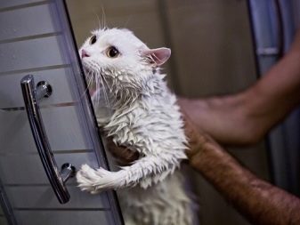 Be sure to bathe your pet, using a special shampoo for this, which should fully match the color of the cat. Water should be no higher than +38 degrees Celsius. It is necessary to ensure that during bathing soapy water does not get into the eyes or ears. After this, the pet should be wrapped in a warm towel, and then put it closer to the heat, de he will be able to completely dry.