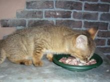 Wild reed cat swims perfectly and is able to hunt in the water, therefore, unlike many purebred cats, chausey is not only possible, but also sometimes needs to be fed with fresh fish. As an alternative, canned food but if you are feeding an unusual product for the first time, it is better not to give it too much - it is better to check if the animal is allergic to any components of such food.