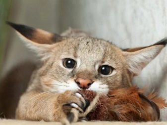 Feeding a chauzy is much more difficult than generally caring for it - too many people mistakenly believe that the semi-wild beast has a universal stomach that can digest absolutely everything, which, of course, is not true. It is possible that in the wild the reed cat does not eat balanced or properly, but there it is not fed with various harmful products that he himself would not have found, and even wild individuals usually do not live as long as well-groomed domestic animals.