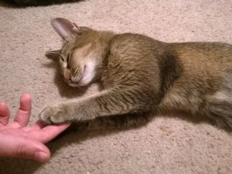 If you have long doubted who is best to get a cat or a dog, then a chauzy is probably the best solution for you, because the mind of this breed is enough to learn typical dog commands. A well-trained animal can not only sit down and lie down at the request of the owner, it also meows, gives a paw and even “dies” in a picture at the command of the owner. Rumor has it that such pets even know how to find and bring slippers to the owner - since the representatives of the breed do not differ in modest dimensions, this is not a problem for them.