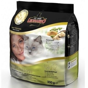 - German feed Leonardo developed by Bewital. If the cat reacts negatively to cereals, a composition based on amaranth and chia seeds with the addition of poultry and fish is suitable for her. There is a composition based on meat (lamb) and rice, it is intended for cats older than a year.