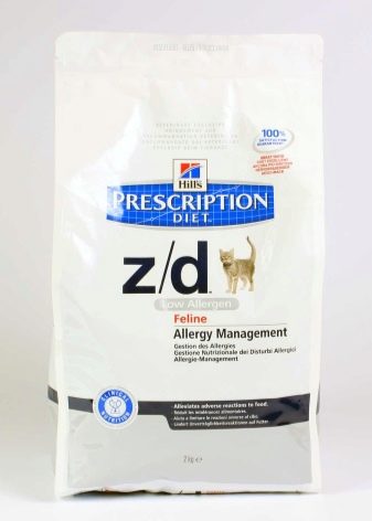 - Hill's Prescription diet z / d - therapeutic cat food from the manufacturer, which is known throughout the world. It is aimed precisely at reducing allergic reactions in the gastrointestinal tract and the skin of the animal. The main ingredient in the feed is rice with the addition of animal protein processed by hydrolysis. Thus, the response of the immune system to food is minimized.