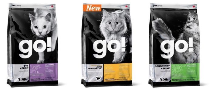 - Go! - “brother” of Now Fresh feed, they are produced by one company. The brand offers a line of recipes for cats with the highest sensitivity of the digestive tract. It includes recipes with absolutely no grain, but with lots of healthy meat and fish protein.