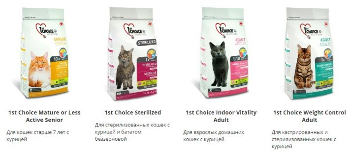 - 1st Choice - manufacturer from Canada. Its Hypoallergenic food is suitable for cats with intolerance to traditional protein. The product includes duck meat and sweet potato, there are no cereals at all.