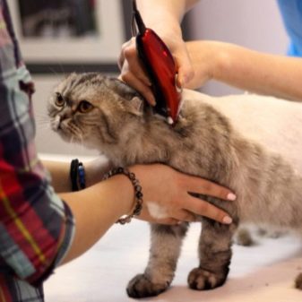 If the cat has diseased organs, perform antiparasitic treatment with the removal of purulent secretions. If the wool fell into tangles, they are removed, the hair is combed for a long time using different combs and brushes. If the cat does not have hair (hairless breed), instead of cutting and combing the hair, the master pays attention to places of possible accumulation of dirt in the folds of the skin. Such cats need a frequent bath.