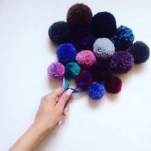 Fluffy pompons can be made from woolen threads.