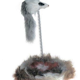 Toys on sticks involve participation in host games. But there is an opportunity to find such methods in which the pet had fun himself, without a person. For example, you can use not too rigid wood, but more flexible materials - small plastic tubes, metal springs, and dense rubber. Such toys can be fixed on a special stand.