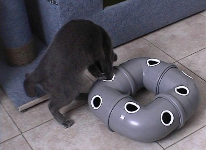 Intellectual toys for cats are wonderful solutions, as they positively affect not only the mood of the pets, but also their mental development. In order for the cat to learn something new, it is not necessary to build closed systems with hidden balls, goodies or woolen balls. Instead of similar designs, it is permissible to make real labyrinths.