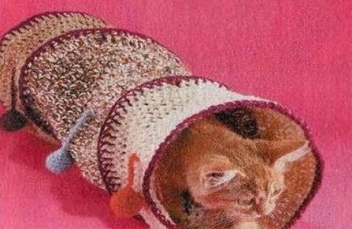 Labyrinths for cats can be made from a variety of materials. For example, knitted tunnels with colorful balls sewn to their walls will seem very interesting to the animal. Such a labyrinth can not be called too complicated, most of all it will suit a kitten.