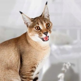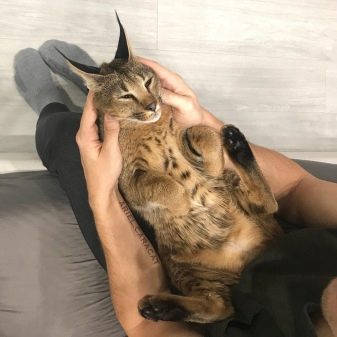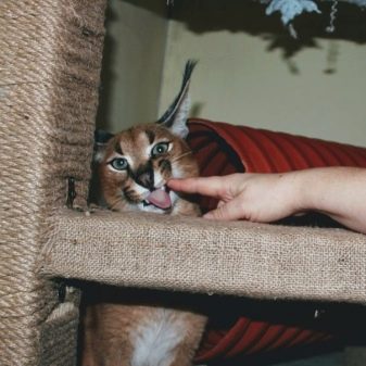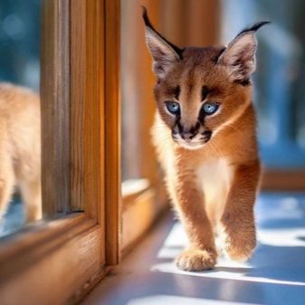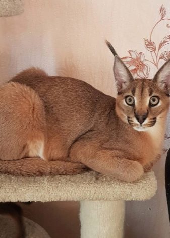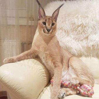 Caracat is a breed difficult to breed and therefore quite expensive. This calm and smart animal will quickly remember its name and will adhere to all the necessary rules in the apartment. Such cats never climb onto the table for food and do not make noise while their owner is resting.