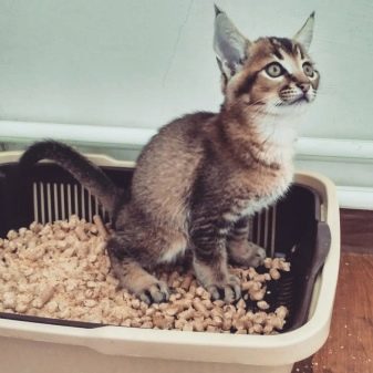 Since this animal is quite smart, it quickly gets used to the toilet. The filler can be used any, for example, wood or gel. The pot should be placed in that corner of the room where the pet is constantly. Problems with addiction do not arise, a person does not even have to teach this animal, he does everything on his own.