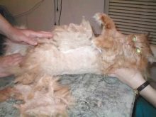 - The animal alone can not get rid of shreds of hair or hair all the time falling out of it. The reason for this is excessively thick coat.