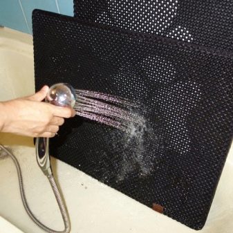 - The two-layer mat is quite easy to care for and storage, which is another undoubted advantage. The litter is equipped with a special side hole (pocket) through which all dirt is shaken out. You can wash the mat under the tap and shower, and periodically clean it with a vacuum cleaner. It is also easy to store it, just fold the product in half.