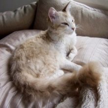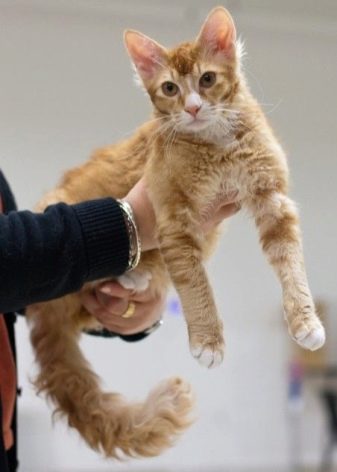 Some mature males can change their appearance: they lose their hair, and then again grow in curly hair. The color, length of the hairs and the degree of their curl may vary among different individuals of this breed. There are pets that have both long and short hair. All cats can have a light springy coat, which can be wavy or curly. Too much curly hair grows on the belly of the pet, near the ears and on the neck.