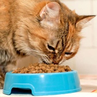 Cats and cats can be fed with dry food. The feed must be of high quality, have all the necessary trace elements, nutrients and vitamins. You can also feed your pet natural food, but not waste. If the owner will give cats natural food, then he must not forget that vitamins must be added to food, since natural food does not have enough vitamins.