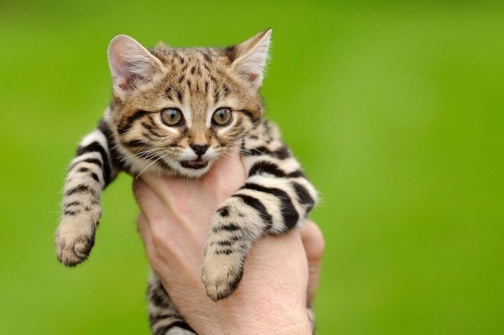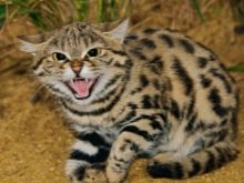 - African black legged this wild cat from the Red Book lives on the African continent, at the age of 1 year it reaches a weight of 1 kilogram;