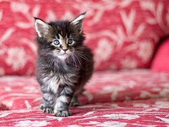 There are kittens of such large breeds as Maine Coon, which during the year from a small fluffy lump that fits easily in the palm of your hand, turn into a huge adult cat weighing up to 10 kilograms.